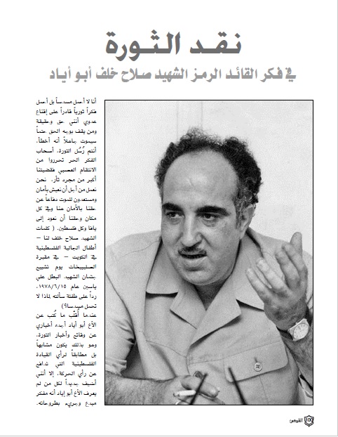 مقال بعنوان: نقد الثورة في فكر الأخ القائد الرمز الشهيد صلاح خلف أبو أياد أنا لا أحمل مسدساً بل فكر ثوري قادر على إقناع عدوي أنني حق وحقيقة ومن يقف بوجه الحق حتماً سيموت جاهلاً أنه أخطأ، أنتم رُسُل الثورة، أصحاب الفكر الحر تحرروا من الانتقام العصبي فقضيتنا أكبر من مجرد ثأر، نحن نعمل من […]