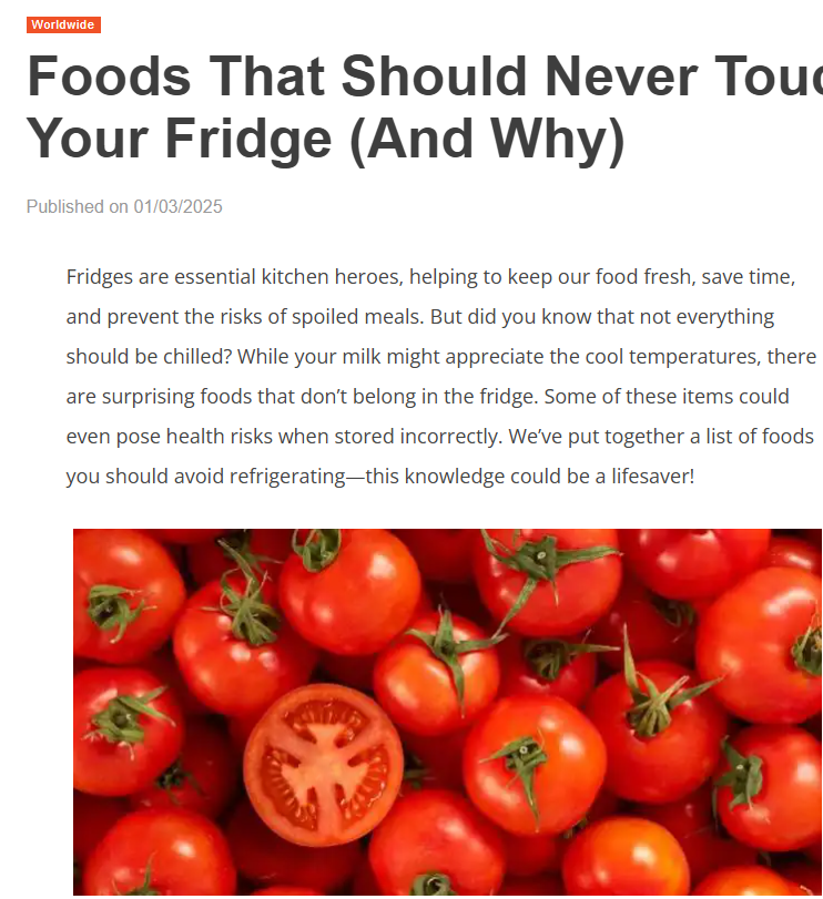 أطعمة لا يجب وضعها في الثلاجة (ولماذا) ترجمة خالد غنام 04/03/2026 تعليق المتزجم: (كثيرا ما نسمع أن الأطعمة التي نتاولها لا تحتوي على مذاق جيد وفقدت رائحتها ونضارتها، حتى تلك الأطعمة الصحية مثل الفواكة الطازجة والخضروات الطازجة، يبدو أن طرق تخزينها غير مناسبة. اقرا المقال التالي لتتعرف على التفاصيل. ملاحظة المقصود بالثلاجة بالمقال هو […]